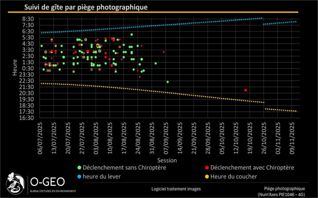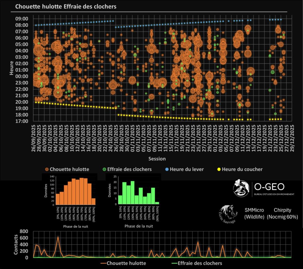 Savoir convertir une information collectée sur le terrain en données est aussi très important pour afficher les comportements des espèces observées. Le bureau d’études O-GEO a développé plusieurs programmes d’analyses qui permettent de représenter les données issues des captures d’images ou des enregistrements de chants ou cris d’Oiseaux.