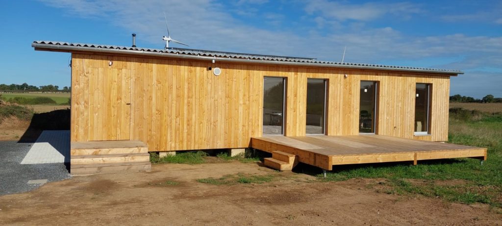 Ce bâtiment est respectueux de l’environnement avec des panneaux photovoltaïques pour notre propre consommation, une cuve de récupération des eaux pluviales pour alimenter les toilettes, isolation en paille pulsée pour les murs et en ouate de cellulose pour la dalle.